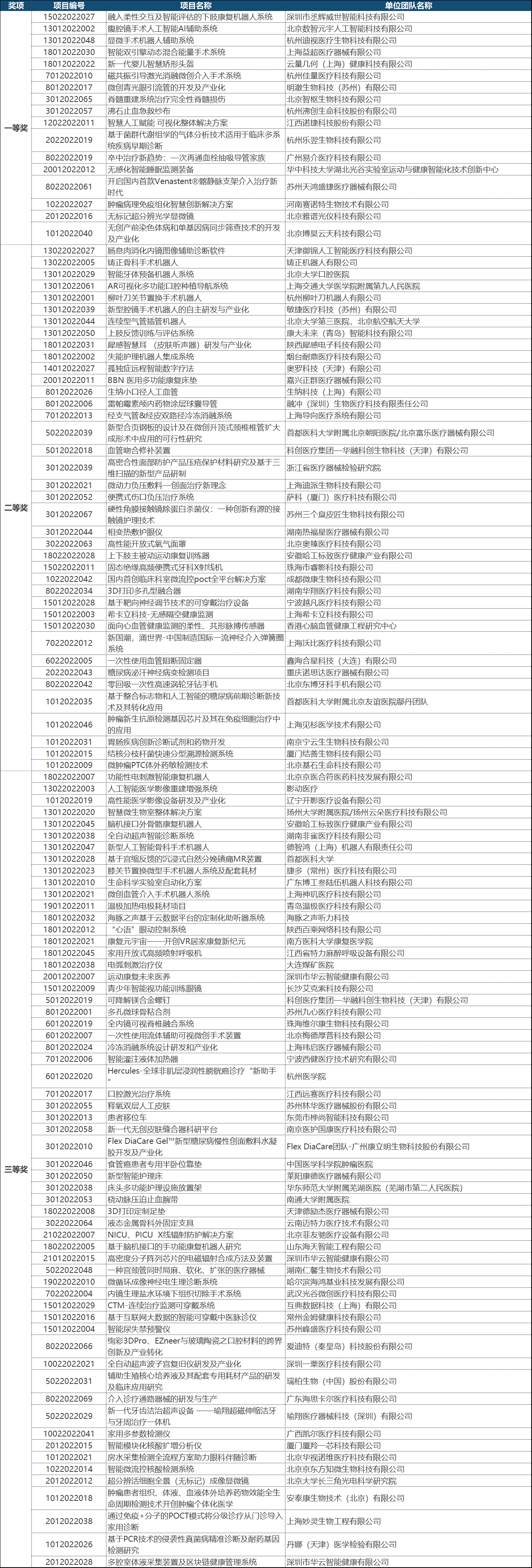 第五届(2022)中国医疗器械创新网创业大赛决赛获奖名单